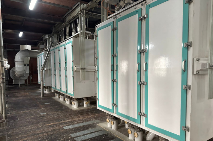 Wheat from the Silos is moved to the Cleaning Section, which is in a separate building, using a pneumatic system. Even the tiniest unwanted particle is removed by the Swiss Technology BUHLER system. The Cleaning Section has high-tech machines like the Cockle Cylinder, Destoner & Aspiration.
